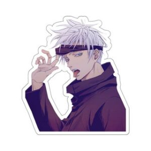 3. Cool Anime Sorcerer Sticker – White Hair & Blindfold